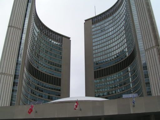 <- U.a. fuhren wir vorbei am neuen Rathaus von Toronto, welches, wenn man es von oben sieht, wie ein Auge ausschaut.