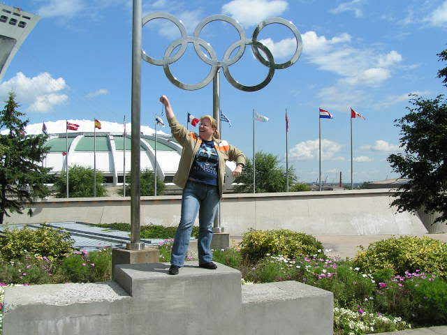 Dann nochmal zurück zum Olympiastadion, wo wir uns auf dem Treppchen der Medaillienvergabe fotographieren lassen konnten. *gg*